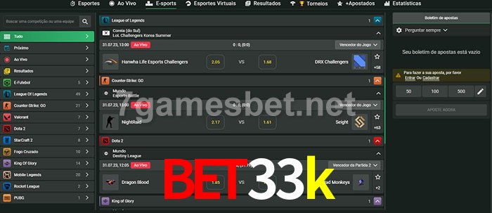 O bet33k oferece uma grande seleção de opções de apostas em e-sports com probabilidades competitivas